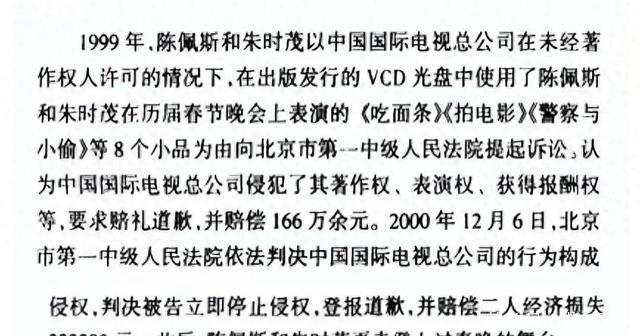 陈佩斯当时想的,是和央视春晚好聚好散。 然而一件事情的发生,让他彻底与央视走向“决裂”。 04 1999年,陈佩斯联同朱时茂,以擅自出版发行他们在春晚演出的作品光盘为由,把央视下属的中国国际电视总公司告上了法庭。